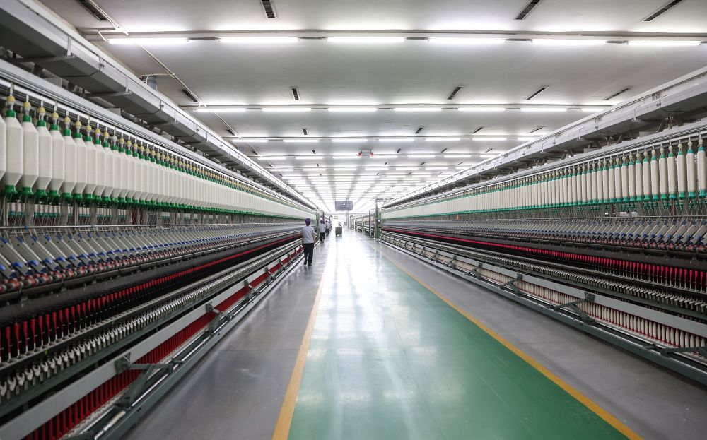 圖為無(wú)錫一棉紡織集團(tuán)有限公司的特高支緊密紡智能制造車(chē)間。新華社記者 楊磊 攝