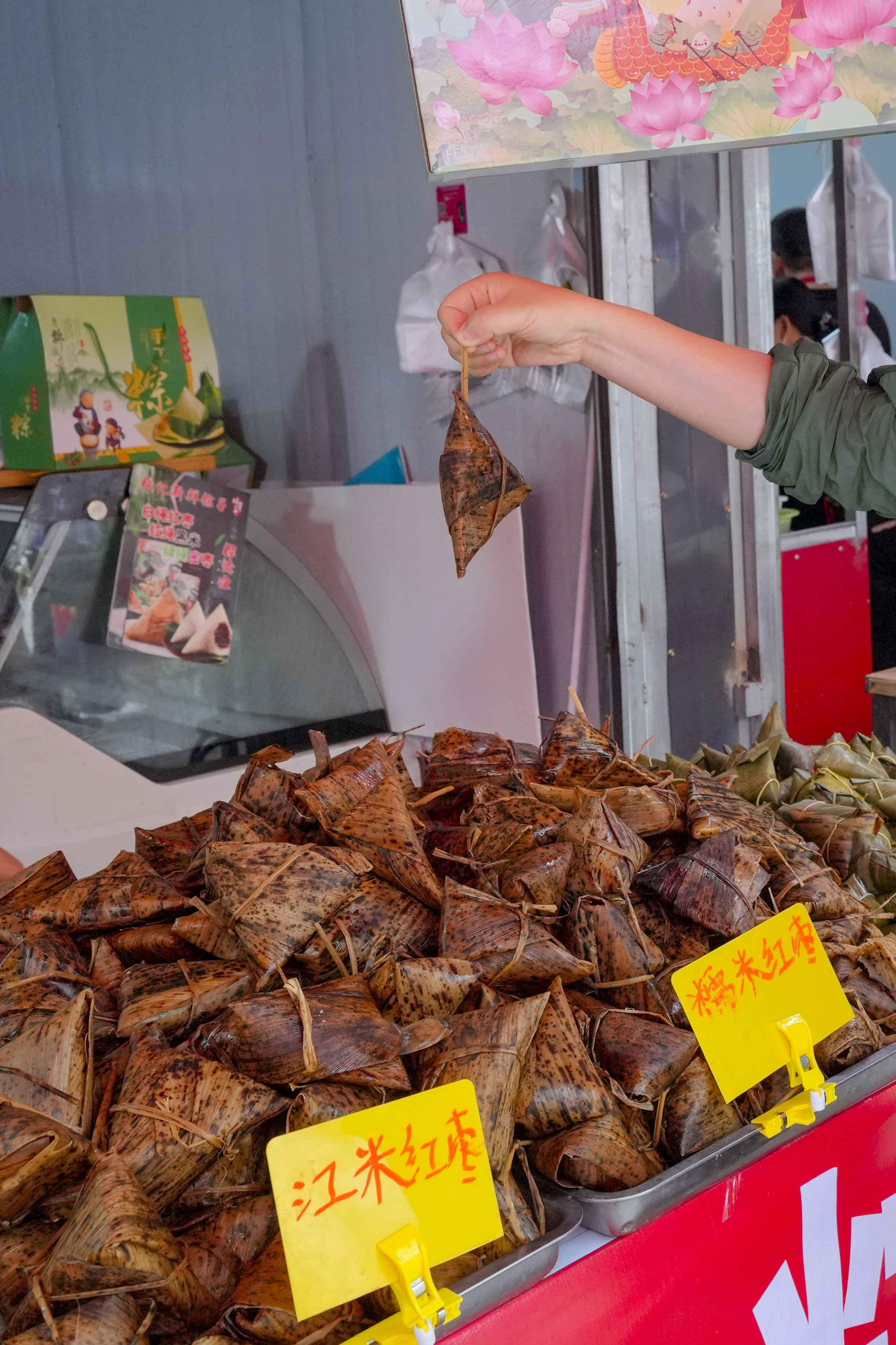 端午節(jié)前的周末,山西運(yùn)城東湖早市熱鬧非凡。扎成把的艾草、刺繡香囊、五彩繩、各色粽子、時(shí)令水果……將節(jié)日氣氛烘托到了高潮。