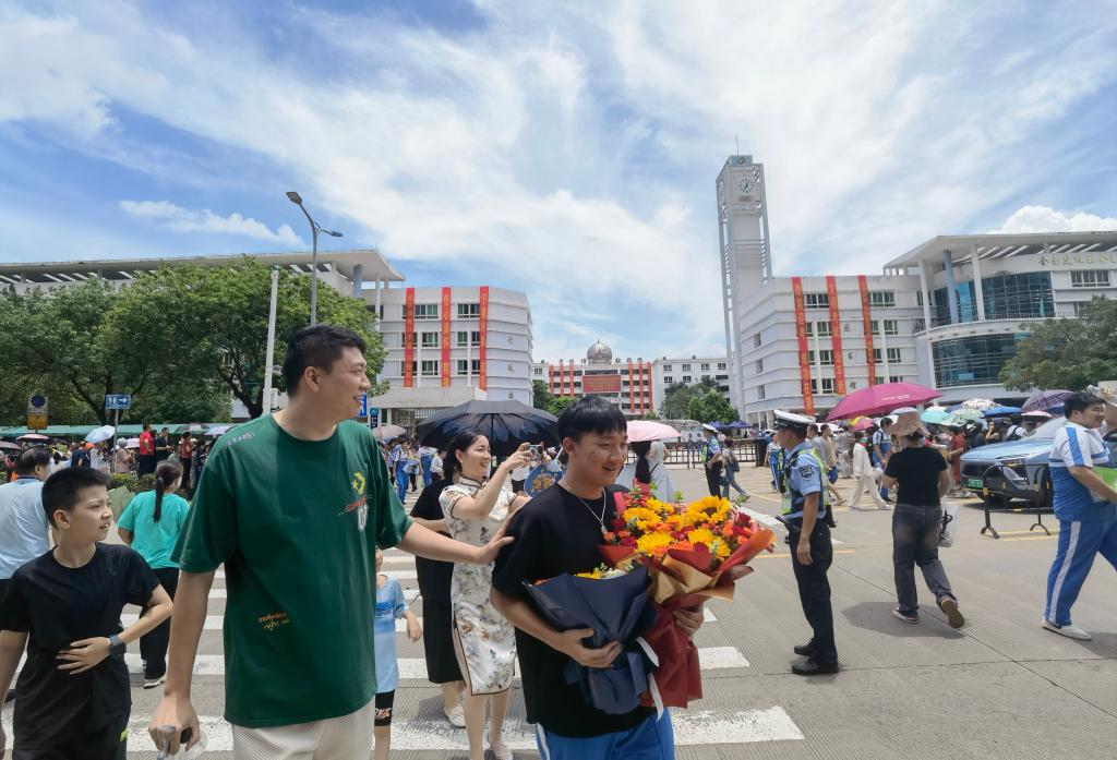 9日下午6點(diǎn)15分,最后一門生物學(xué)考完后,廣東2024年高考順利結(jié)束。在廣州市第六中學(xué)考場門口,一位父親手持親手做的向日葵迎接兒子,表達(dá)“一舉奪魁、金榜題名”的美好愿望;一位母親對兒子說,不管考得如何,接下來是新的開始。