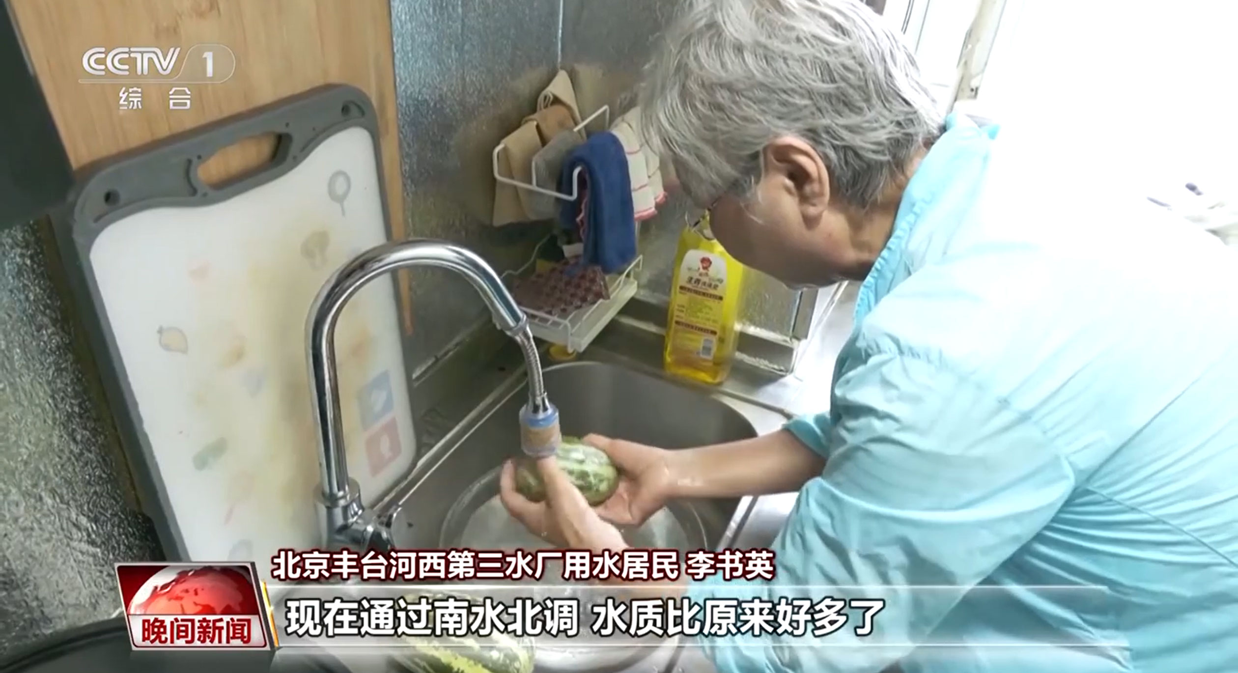 北京豐臺河西第三水廠用水居民 李書英:我們原來(燒)水的時候,用那水壺(燒)開了(水)以后還得沉淀,沉淀十幾分鐘以后再灌暖壺,但是暖壺里水堿也特別多,現(xiàn)在通過南水北調(diào),水質(zhì)比原來好多了,水堿比原來大大減少。