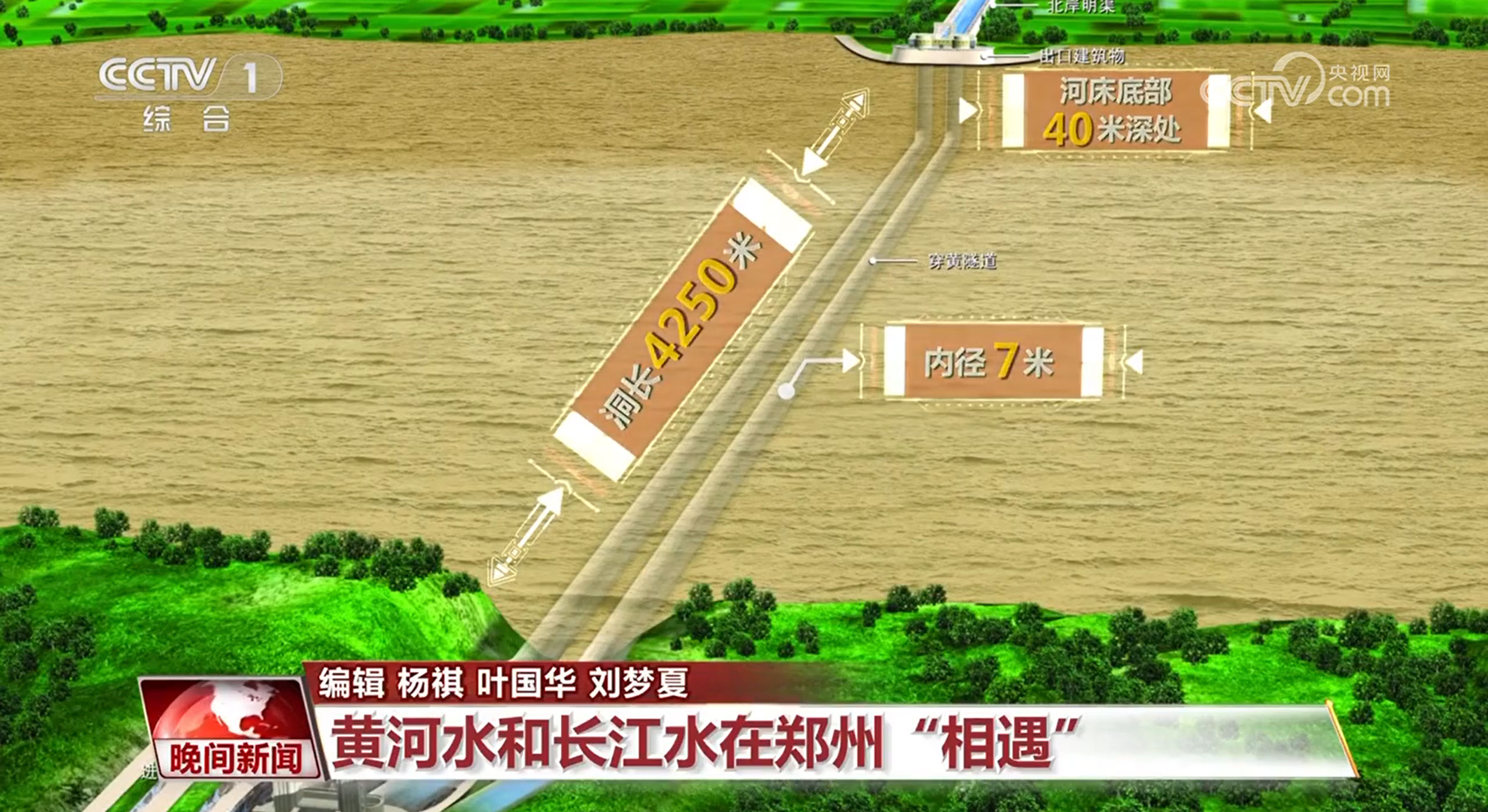 來自丹江口水庫的長江水自渠首出,一路自流向北,黃河成為阻礙南水北去的天然屏障。為了解決這個問題,“穿黃工程”由此誕生?!按S”顧名思義就是“穿越黃河”,黃河河床下復雜的地質(zhì)條件,注定了穿黃隧道不同于一般的交通隧道,也造就了隧道非同尋常的構(gòu)造。南水北調(diào)工程建設者在鄭州花園口西黃河河床底部40米深處開鑿兩條隧道,穿黃隧道為雙線有壓輸水隧道,單個洞長4250米,內(nèi)徑7米,這樣的內(nèi)徑可以滿足洞內(nèi)跑汽車。有了“穿黃工程”,北上的長江水通過兩條穿黃隧道與黃河立體交叉相遇,平時,黃河水在上面流,南水北調(diào)的長江水在河底隧道中流過,兩者上下而過,猶如一條巨龍在黃河之下隱去了身影。