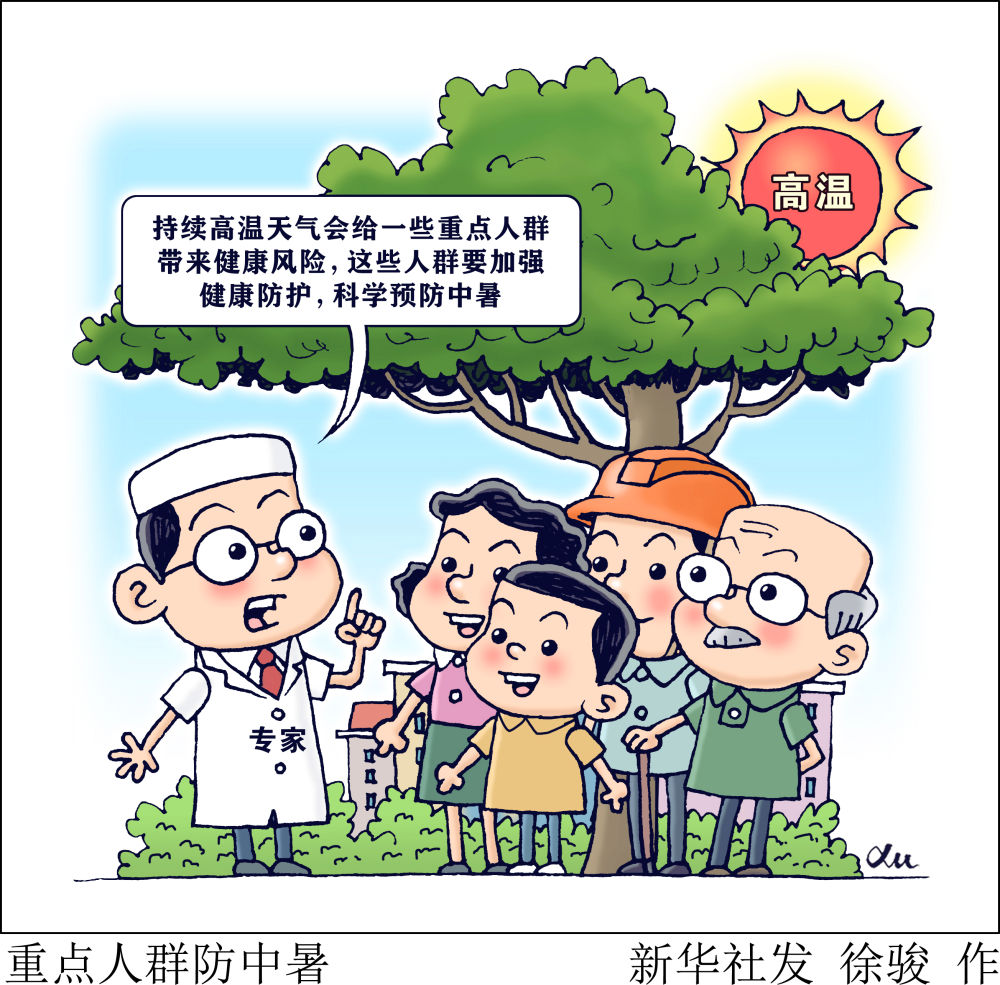 王荃特別提醒,老年人、兒童、孕產(chǎn)婦、慢性基礎性疾病患者以及戶外作業(yè)人員等人群,更容易發(fā)生中暑,需格外加強自身健康防護。