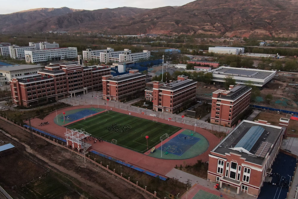 這是果洛西寧民族中學(xué)(2021年4月28日攝,無人機(jī)照片)。