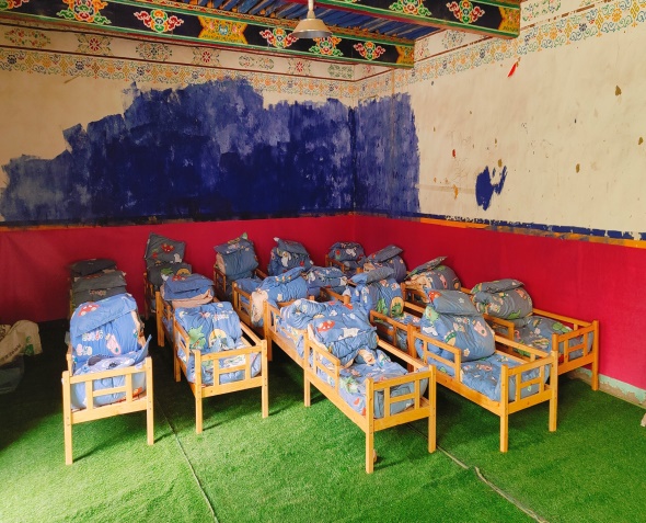 金點子,抓實干。自階段性入戶工作開展以來,駐西嘎村第十三批工作隊認真了解入戶時發(fā)現(xiàn)的村幼兒園改造未能推進的問題,現(xiàn)場走訪村幼兒園,排查村幼兒園用火、用電、用氣、食品衛(wèi)生安全隱患。在交談中,兩位教師談及幼兒園房間老舊、水泥地板凹凸不平,導(dǎo)致幼兒無法午休的問題,工作隊第一時間請示領(lǐng)導(dǎo),現(xiàn)場勘察房間形狀與大小,駐村隊員自發(fā)購買并鋪就64.2平米防滑草坪地毯,以改善園內(nèi)22名幼兒生活環(huán)境,給孩子們創(chuàng)建了相對舒適、干凈的午休環(huán)境。村幼兒園教師次珍表示:“此次活動極大改善了孩子們的生活條件,感謝人行日喀則市分行駐村工作隊一直以來對村幼兒園工作的關(guān)心?!?/p>