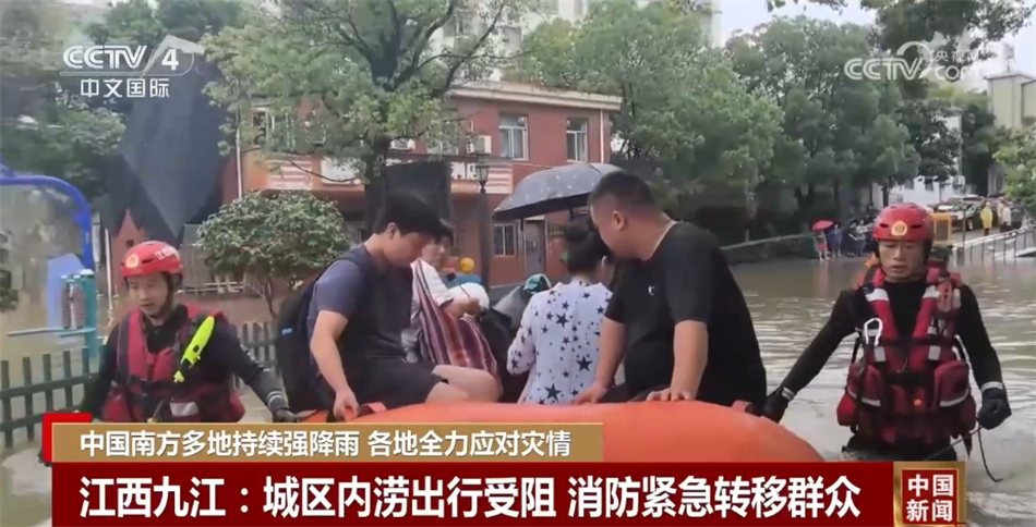 23日,江西九江遭遇強降雨,城區(qū)出現(xiàn)積水內(nèi)澇,部分路段積水深超一米,居民出行受到影響。當(dāng)?shù)叵谰仍藛T利用橡皮艇幫助群眾轉(zhuǎn)移,同時,消防救援人員使用浮艇泵,連接水帶,開展排水作業(yè)。
