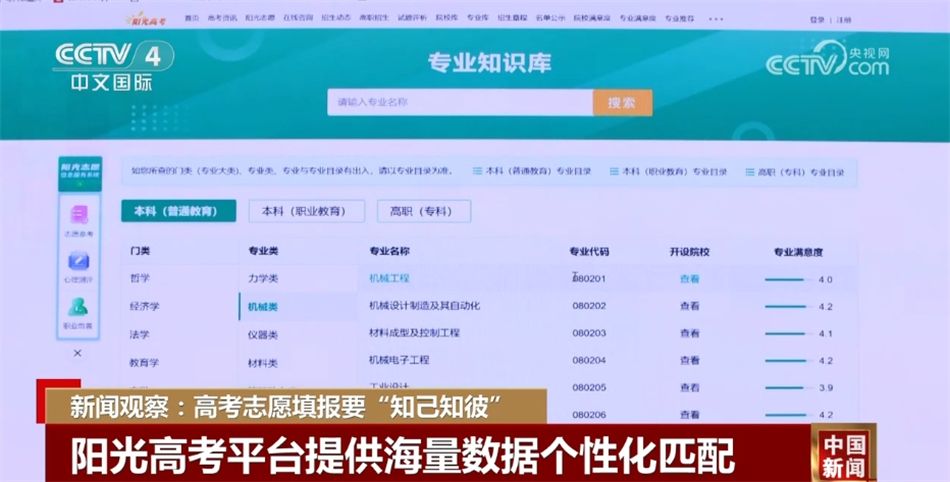今年,教育部首次在“陽光高考平臺”推出免費的陽光志愿信息服務(wù)系統(tǒng),將海量數(shù)據(jù)系統(tǒng)集成,進(jìn)行個性化匹配推薦,多方面幫助考生了解學(xué)校和專業(yè);同時還將舉辦“高考志愿填報云咨詢周”活動,組織各省級招生考試機構(gòu)和高校通過文字問答、視頻直播等方式,為全國考生和家長提供志愿填報咨詢指導(dǎo)公益服務(wù)。
