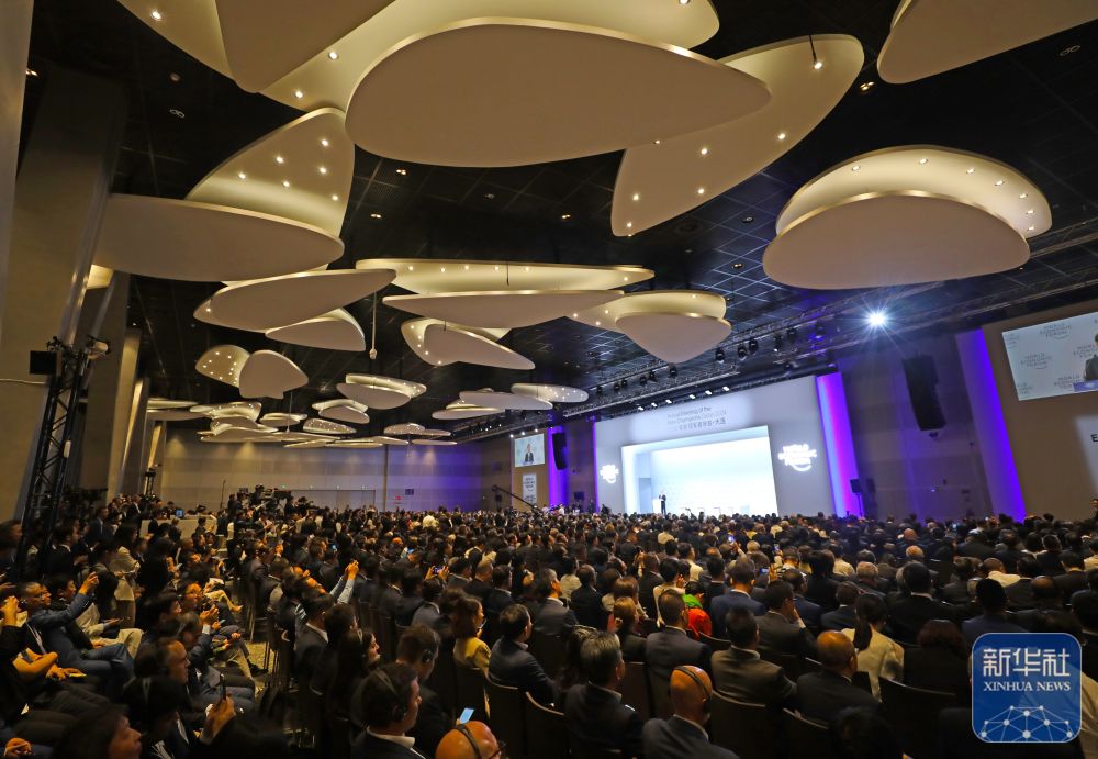 ↑ 6月25日在夏季達(dá)沃斯論壇主會(huì)場(chǎng)大連國(guó)際會(huì)議中心拍攝的開(kāi)幕式現(xiàn)場(chǎng)。