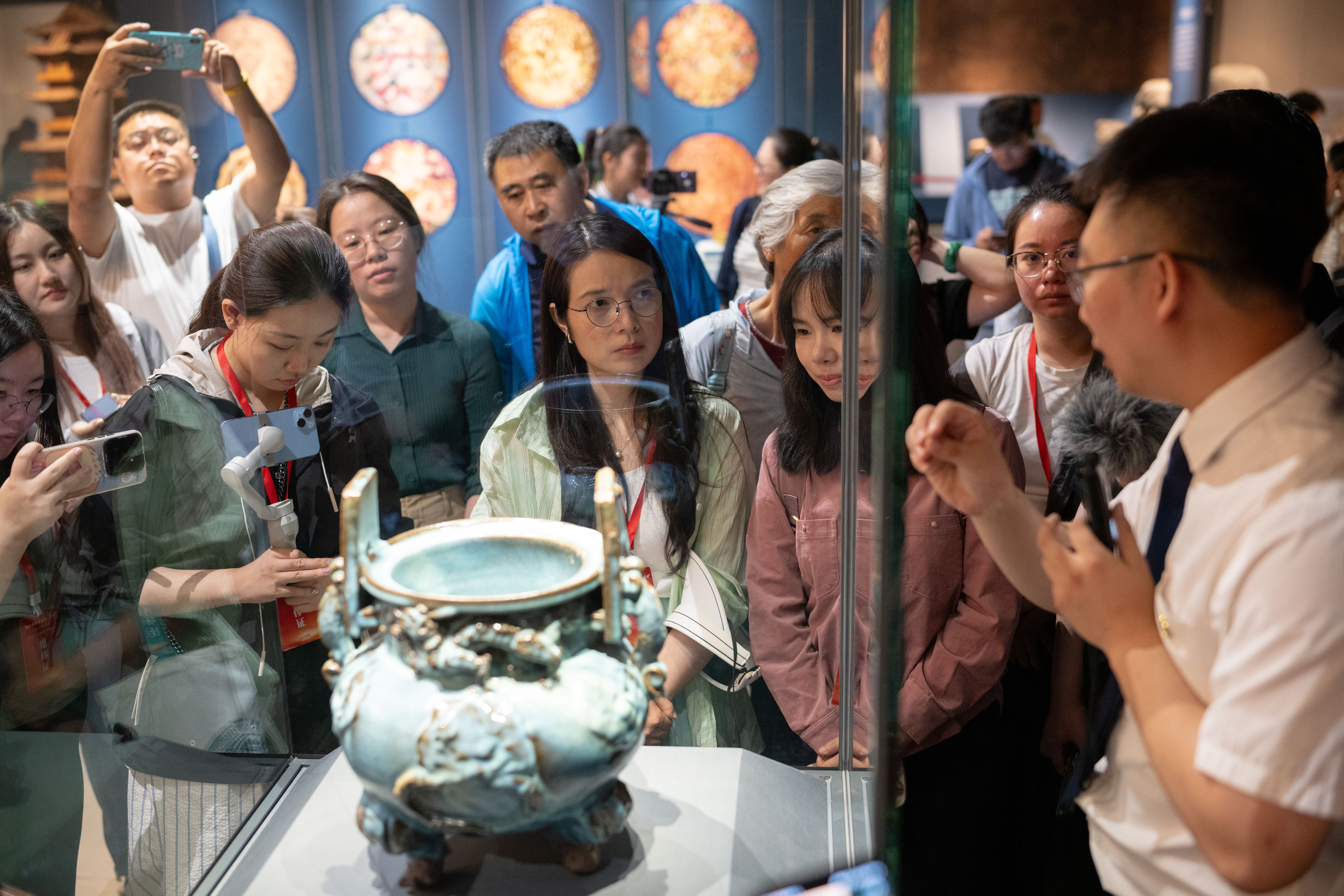隨后,采訪團(tuán)成員來(lái)到了內(nèi)蒙古博物院,在“大遼契丹”“交融匯聚”等展廳,通過(guò)一件件經(jīng)典的藏品,一個(gè)個(gè)精彩的文物故事,了解中華民族悠久歷史和燦爛文化。