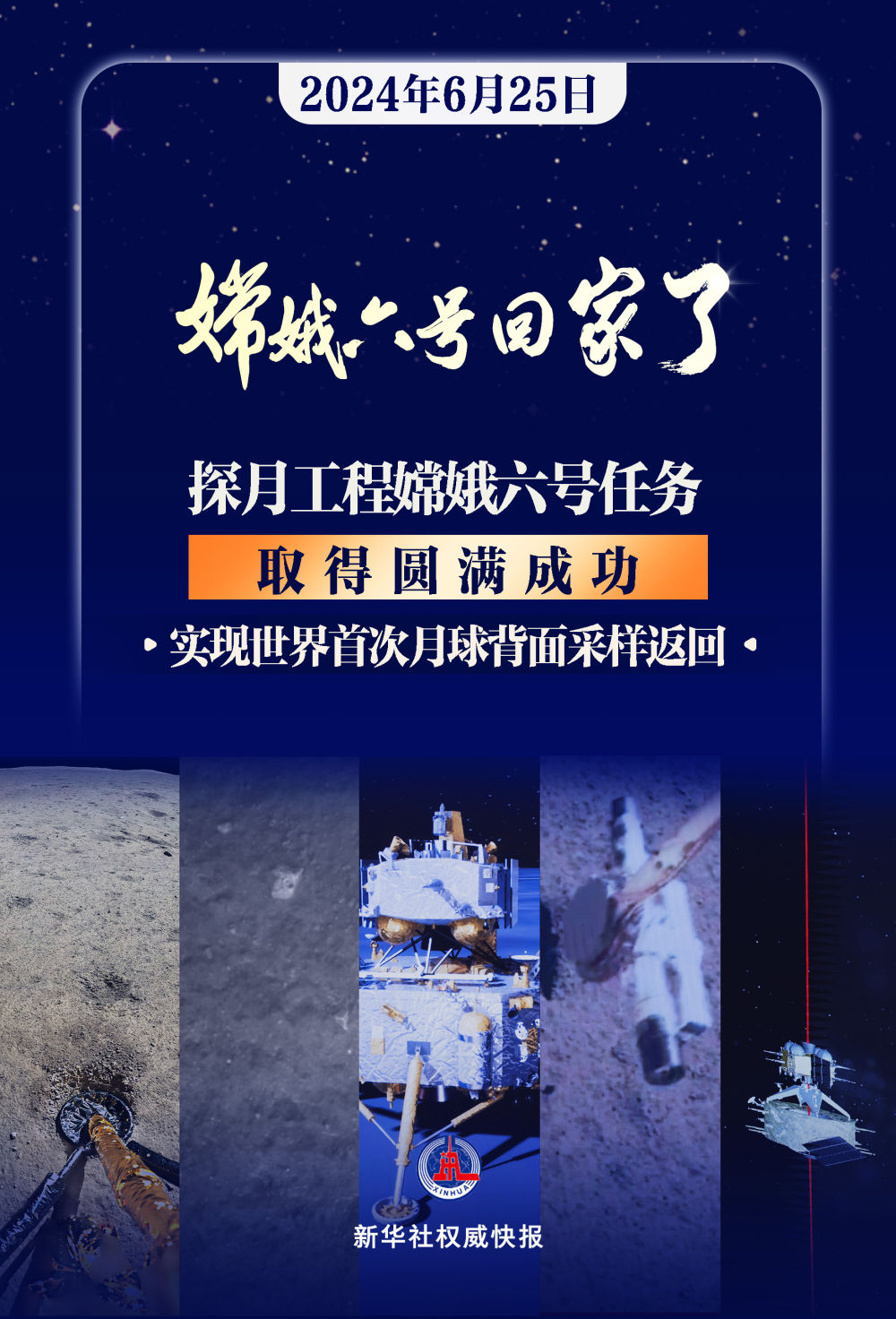 從5月3日成功發(fā)射到6月2日精準著陸在月球背面“挖寶”,再到6月25日順利著陸“回家”,嫦娥六號每一個“動作”環(huán)環(huán)相扣、順利進行,這場長達53天的太空探索終獲成功!