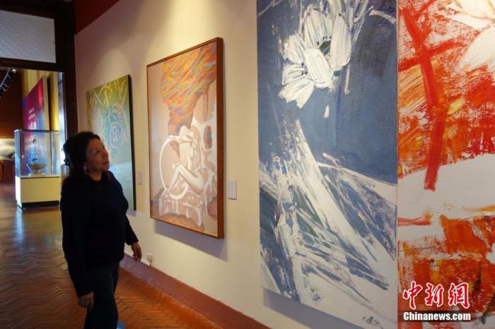 資料圖:當(dāng)?shù)貢r間2016年11月18日,利馬,一名秘魯女觀眾觀看APEC“人與自然”藝術(shù)展。11月16日,為期23天的“感知中國走進秘魯——APEC‘人與自然’藝術(shù)展”在秘魯國家考古人類學(xué)歷史博物館舉辦。 中新社記者 莫成雄 攝