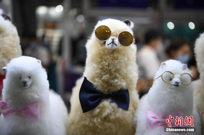 資料圖:2021年5月7日,首屆中國國際消費品博覽會在海南省??谑姓介_展,秘魯羊駝毛產(chǎn)品品牌Warmpaca攜各種羊駝萌寵玩偶亮相消博會。 中新社記者 崔楠 攝