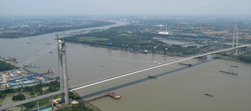 江蘇南京,仙新路過江通道主橋建設(shè)中,創(chuàng)新應(yīng)用中建五洲研發(fā)的抗疲勞正交異性鋼橋面板,試驗結(jié)果顯示橋梁的使用壽命提高72%以上。