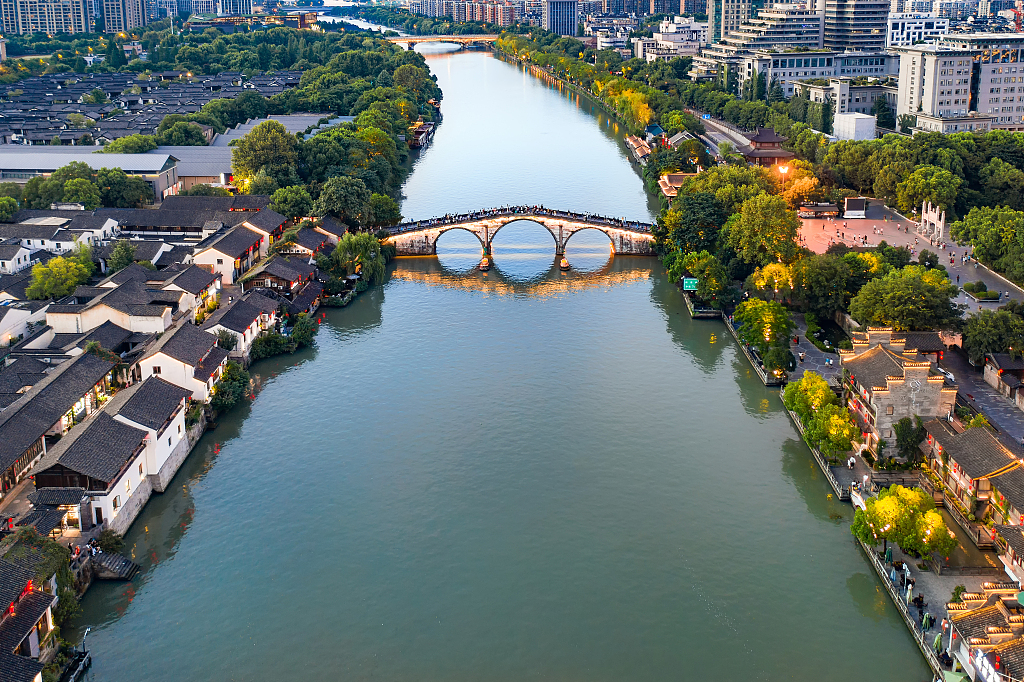 2022年,京杭大運河時隔百年,再次實現(xiàn)了全線通水,也為未來的全線通航提供了可能性。如今的運河,舊貌如舊,新顏煥新。在北京,運河商務區(qū)與見證千年漕運的燃燈塔比鄰而立,現(xiàn)代金融服務產(chǎn)業(yè)鏈和總部經(jīng)濟蓬勃發(fā)展;在揚州,中國大運河博物館游人如織,“5G+VR”技術讓人身臨其境;在杭州,小河直街的游客頭頂宋制簪花,運河旁的體育場館辦成亞運賽事……大運河保護,并不是讓經(jīng)濟發(fā)展讓位于文化傳承,而是讓運河文化吸引人氣、聚集活力,成為新的經(jīng)濟增長點。