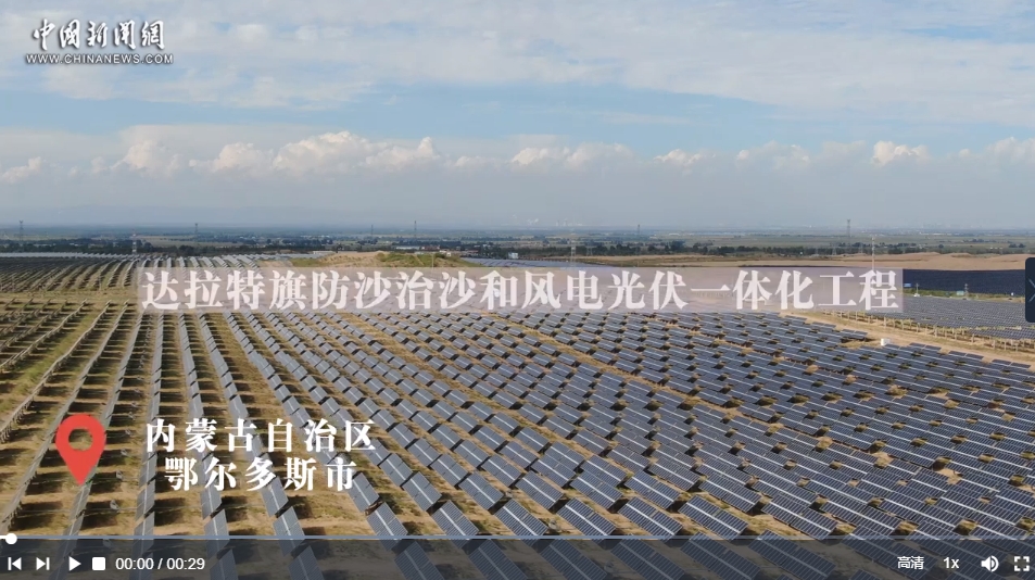 6月28日,“鑄牢共同體 中華一家親”主題宣傳活動采訪團(tuán)來到內(nèi)蒙古自治區(qū)鄂爾多斯市達(dá)拉特旗防沙治沙和風(fēng)電光伏一體化工程。工程主要布局在庫布其沙漠和南部干旱硬梁區(qū),庫布其沙漠工程規(guī)劃總長133公里、裝機(jī)規(guī)模2700萬千瓦的“光伏長城”。達(dá)拉特旗光伏發(fā)電應(yīng)用領(lǐng)跑基地位于“光伏長城”中部,基地采取“光伏+生態(tài)治理+有機(jī)農(nóng)林+沙漠旅游”模式,種植紫穗槐、黃芩、黃芪等經(jīng)濟(jì)作物。