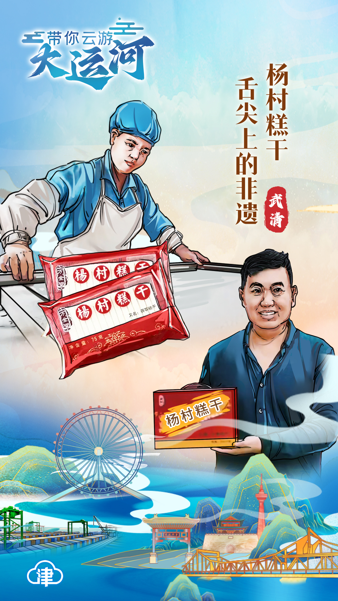 作為“流動的文化”,大運河不僅是文化傳播的紐帶,更推動了我國地區(qū)文化繁榮與創(chuàng)新?!澳媳敝圮嚠吋?,舟楫駢至輻輳”正是對當(dāng)時繁盛情況的記錄。人員流動讓運河沿線名吃薈萃,形成了眾多非遺美食。軟糯醇香的楊村糕干作為武清區(qū)的美食代表之一,經(jīng)歷了時間的洗禮和食客的檢驗,得以流傳至今。