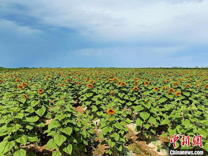 記者日前走進素有“中國食葵之鄉(xiāng)”的第十師北屯市農田,葵花綻放,長勢良好,預計又是一個豐收年。