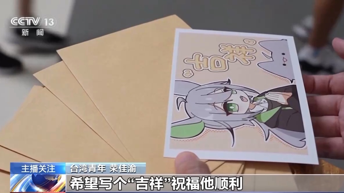 臺(tái)灣青年 榮佳渝:他跟我在介紹一些瓷器之類的,可以源源不斷在那邊講,我就覺(jué)得好厲害,當(dāng)然也會(huì)希望繼續(xù)跟他交流,因?yàn)榭ㄆ潜容^有心意的東西,我就想自己手畫交給對(duì)方,寫個(gè)“吉祥”祝福他順利。