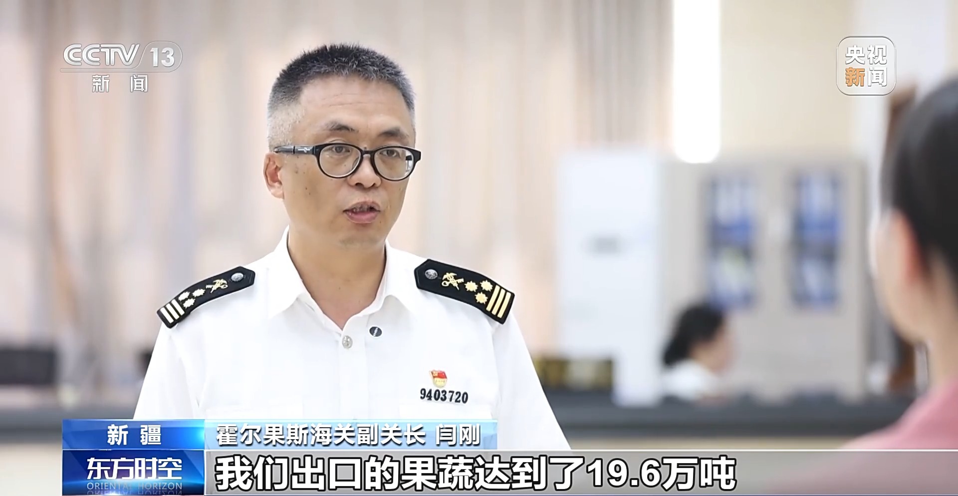 霍爾果斯海關副關長 閆剛:果蔬出口一直是我們口岸的一大特色和亮點,2023年全年我們出口的果蔬達到了19.6萬噸,今年1—6月份,我們出口的果蔬就達到了20萬噸,就是說我們今年上半年已經(jīng)完成了去年全年的量,這說明“提前申報+口岸直通”的通關模式,對果蔬出口,對企業(yè)減少成本有巨大的推進作用。