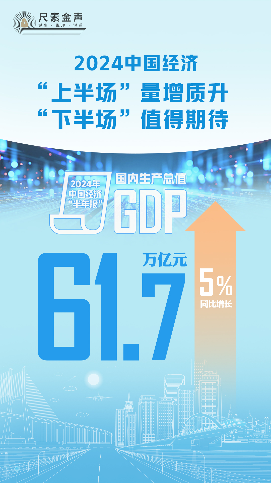 正在北京舉行的黨的二十屆三中全會,將重點(diǎn)研究進(jìn)一步全面深化改革、推進(jìn)中國式現(xiàn)代化。改革的“時代新篇”萬眾矚目,中國的發(fā)展也令人高度關(guān)注——同日,國家統(tǒng)計(jì)局發(fā)布2024年中國經(jīng)濟(jì)“半年報(bào)”:國內(nèi)生產(chǎn)總值(GDP)61.7萬億元,同比增長5%。結(jié)合二季度國內(nèi)外形勢,預(yù)計(jì)上半年中國經(jīng)濟(jì)增速仍將保持領(lǐng)先,仍是世界經(jīng)濟(jì)增長的重要引擎和穩(wěn)定力量。