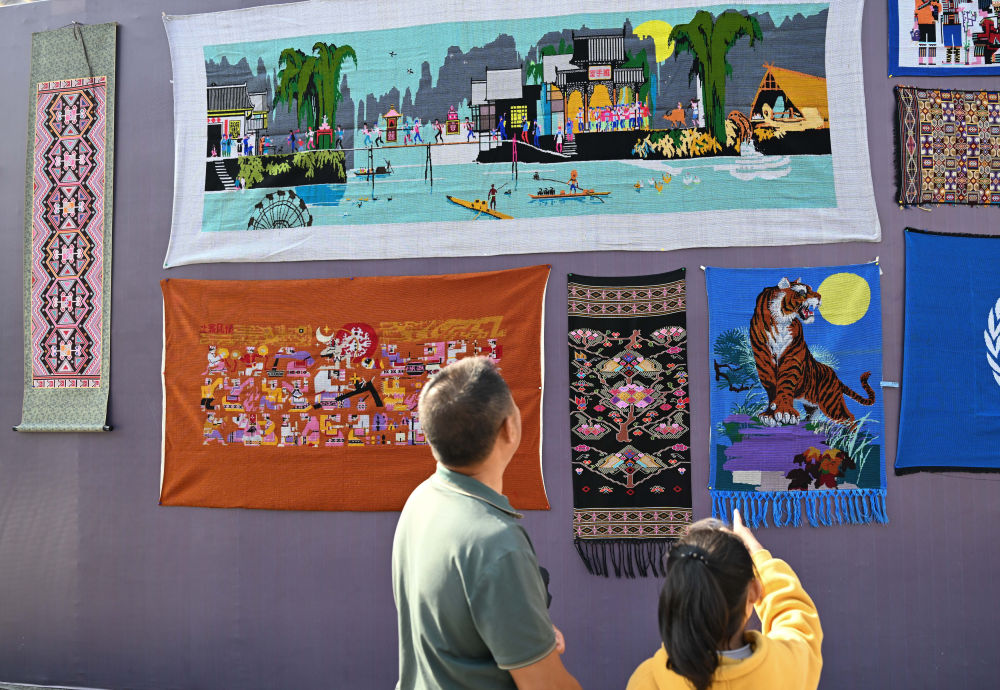 觀(guān)眾參觀(guān)唐洪祥收藏的西蘭卡普作品(2023年10月28日攝)。
