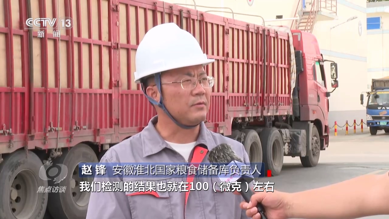 安徽淮北國(guó)家糧食儲(chǔ)備庫(kù)負(fù)責(zé)人趙鋒:“嘔吐毒素標(biāo)準(zhǔn)是每一千克小于1000微克,我們檢測(cè)的結(jié)果也就在100微克左右,有的檢不出來(lái)。玉米赤霉烯酮(標(biāo)準(zhǔn))是每一千克小于60微克,檢測(cè)結(jié)果基本上在10微克以內(nèi),小麥的質(zhì)量非常好。”