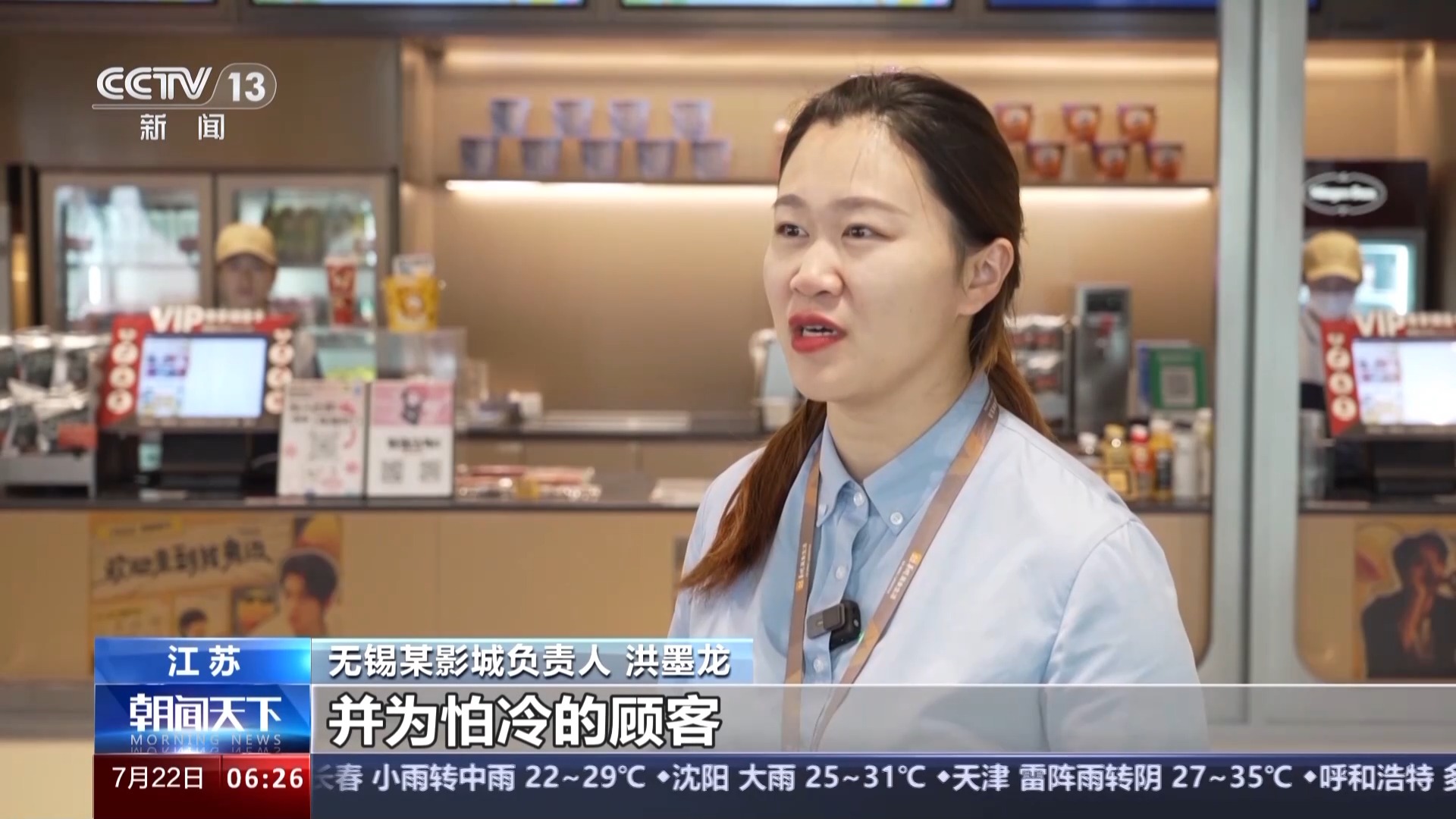 無錫某影城負(fù)責(zé)人 洪墨龍:首先我們保證影廳的溫度適宜,并為怕冷的顧客提供免費干凈的毛毯。我們還會通過現(xiàn)場的陳列布置,打造主題觀影氛圍,讓觀眾在觀影過程中有更多的參與感和互動體驗。