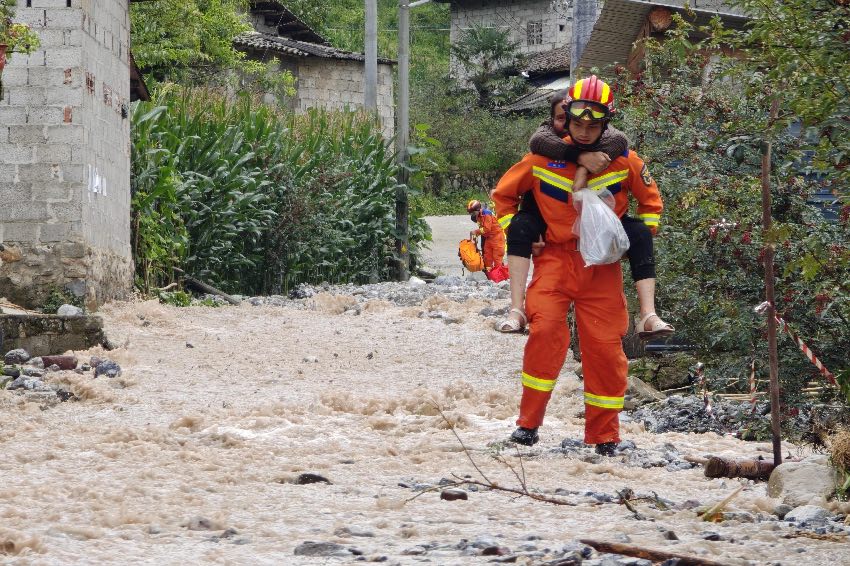 肖袁英和同事趕到馬烈鄉(xiāng)新華村時(shí),距離災(zāi)害現(xiàn)場還有約2公里?!皞咴诤訉?duì)面的山上,道路、橋梁已沖毀,過不去??恐诰驒C(jī)的幫助,我們才平穩(wěn)地?cái)[渡到河對(duì)岸?!毙ぴ⒄f,腳下到處都是滑坡體,泥沙漫過了腳踝,“當(dāng)?shù)厝藥е覀冏?,根本沒有路。走過了玉米地、河灘、花椒林,帶路村民一路用砍刀掃平荊棘,開出一條路,徒步1個(gè)小時(shí)才找到患者。”