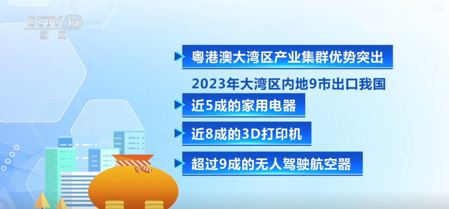 粵港澳大灣區(qū)產(chǎn)業(yè)集群優(yōu)勢(shì)突出,2023年,大灣區(qū)內(nèi)地9市出口了我國近五成的家用電器、近八成的3D打印機(jī)和超過九成的無人駕駛航空器。