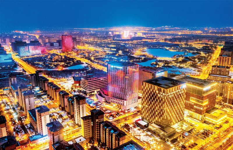 設(shè)立雄安新區(qū),是以習(xí)近平同志為核心的黨中央高舉新時代改革開放旗幟作出的重大戰(zhàn)略舉措。圖為2024年2月7日雄安新區(qū)容東片區(qū)夜晚景象。雄安新區(qū)宣傳網(wǎng)信局供圖 李達/攝