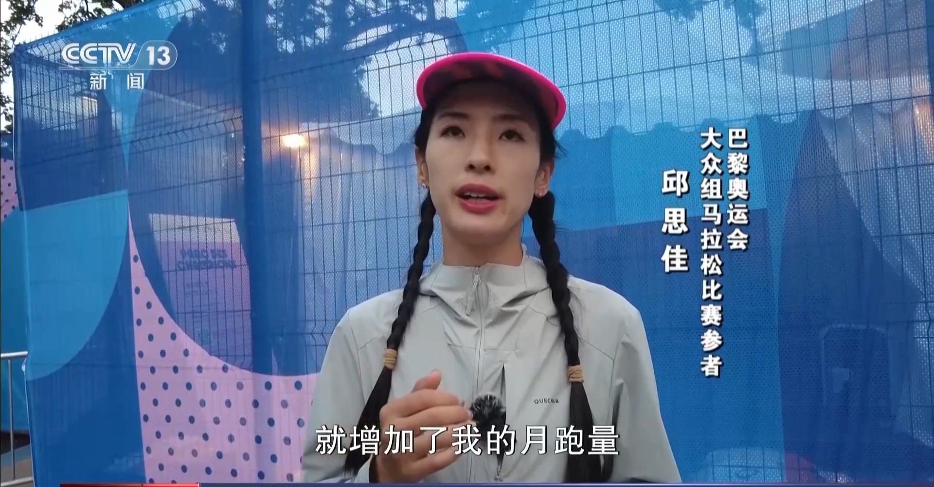 巴黎奧運(yùn)會(huì)大眾組馬拉松比賽參賽者 邱思佳:我之前每個(gè)月的月跑量可能都在100公里左右,我在報(bào)名了這個(gè)比賽后,我就更加有動(dòng)力,就增加了月跑量,能夠達(dá)到200公里每月。