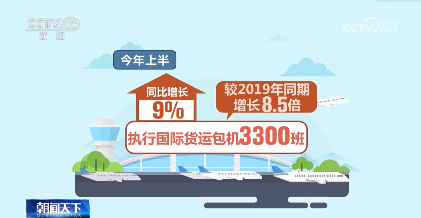 為適應(yīng)跨境電商、電動(dòng)汽車、鋰電池和光伏產(chǎn)品“新三樣”等貨物運(yùn)輸?shù)臅r(shí)效性、靈活性要求,國際貨運(yùn)不定期航班量也保持增長的趨勢。今年上半年執(zhí)行國際貨運(yùn)包機(jī)3300班,同比增長9%,較2019年同期增長8.5倍。