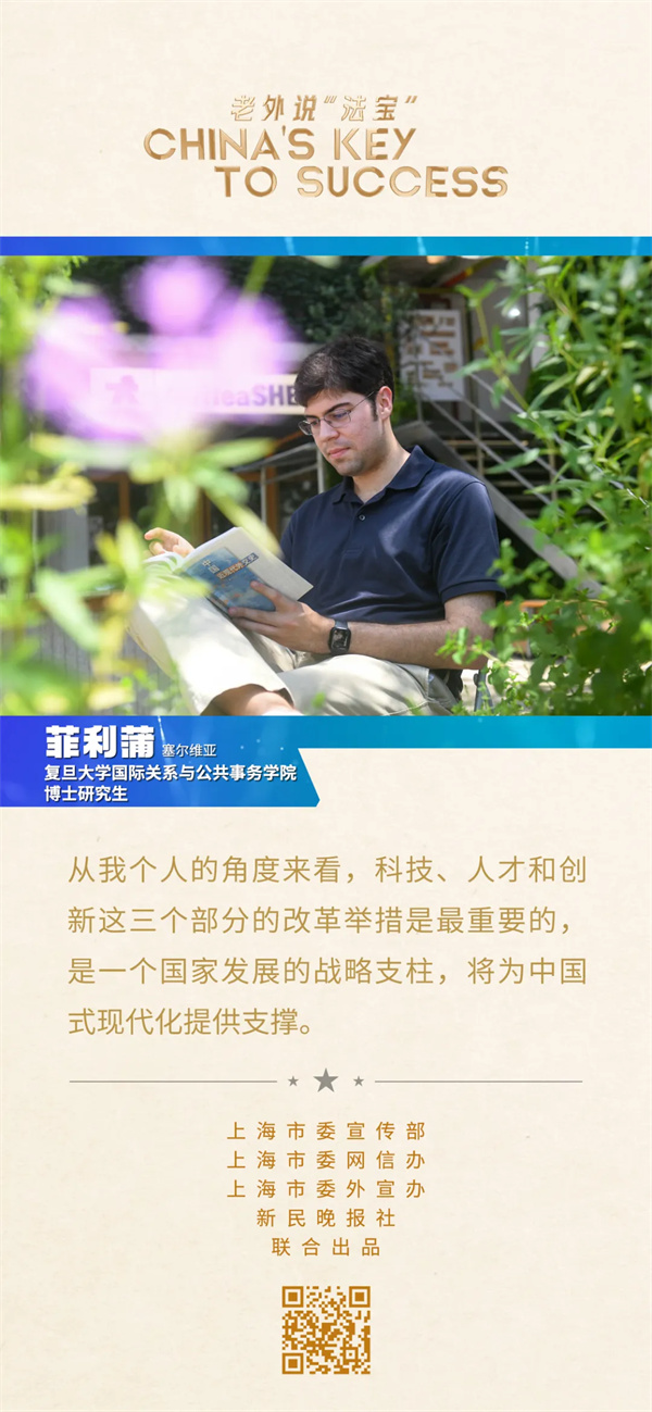 塞爾維亞帥小伙菲利蒲是復(fù)旦大學(xué)國際關(guān)系與公共事務(wù)學(xué)院博士研究生。很小的時候,他就跟隨來華從事歷史研究工作的父母來到上海,小學(xué)二年級就當(dāng)上了留學(xué)生。用他的話來說,就是“接受了九年制義務(wù)教育”。