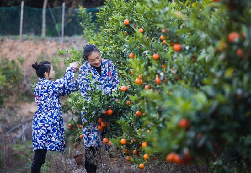 種植戶在將樂縣??诖迥毘确N植基地中采收臍橙。董觀生/攝
