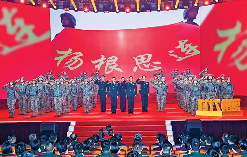 2024年5月27日,中共中央宣傳部授予陸軍某合成旅“楊根思連”“時(shí)代楷模”稱號(hào)。圖為連隊(duì)官兵代表參加“時(shí)代楷?!卑l(fā)布儀式的場(chǎng)景。新華社記者 張永進(jìn)/攝