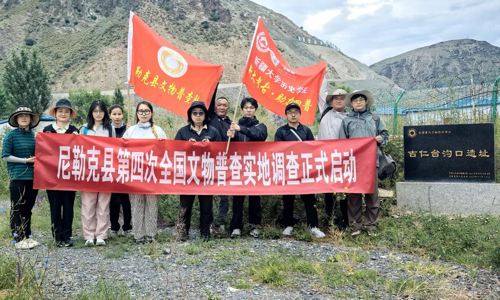 尼勒克縣第四次全國(guó)文物普查工作隊(duì)在吉仁臺(tái)溝口遺址合影。新華社發(fā)(受訪者供圖)