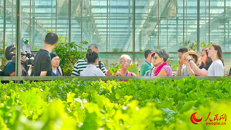 在新疆昌吉農業(yè)博覽園,中外漢學家、翻譯家、作家參觀新疆現代農業(yè)種植情況。人民網 李欣洋攝