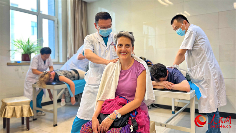 在新疆醫(yī)科大學一附院(昌吉分院),中外漢學家、翻譯家、作家參觀中醫(yī)館,體驗中醫(yī)文化。人民網 李欣洋攝