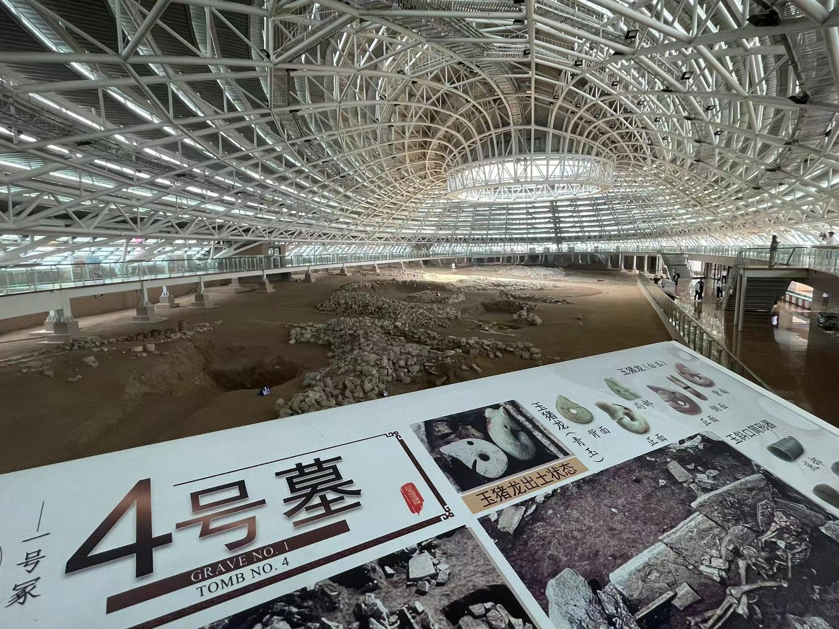 查海遺址是新石器時(shí)代古人類聚落遺址,距今約八千年。“中國人對龍的崇拜在查海時(shí)代就已經(jīng)出現(xiàn)。這個(gè)龍形堆石,是迄今為止我國考古發(fā)現(xiàn)的年代最早、形體最大的龍形象?!辈楹_z址博物館館長李井巖告訴記者,這條“龍”采用當(dāng)?shù)卮笮【鶆虻募t褐色天然石塊為“鱗”,由人工堆砌擺放而來,展示出巨龍就要騰空飛舞的態(tài)勢。