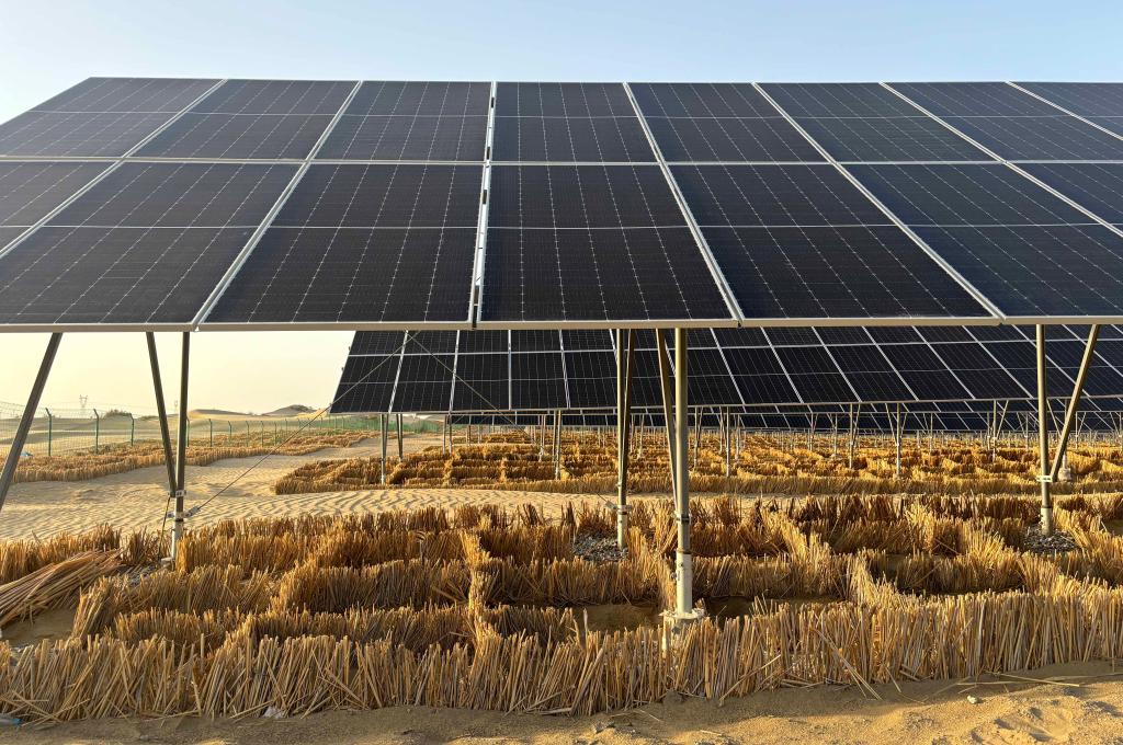 沙戈荒光伏生態(tài)治沙示范項目區(qū)。(王騫 攝)
