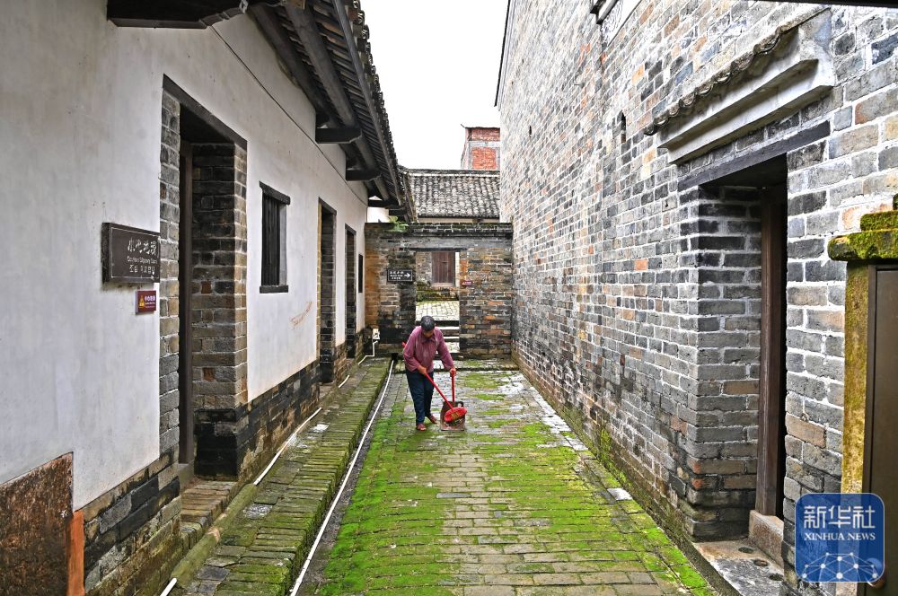 8月15日,一名村民在大蘆村古宅里打掃。