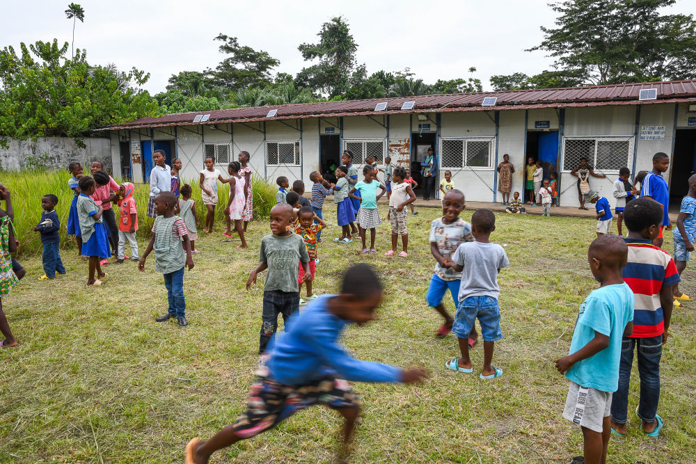 太陽升起,陽光灑在幾內(nèi)亞灣畔的喀麥隆克里比深水港。在距港口約25公里的恩杜馬萊村,10歲的布賴恩·芒格來到村里的小學(xué)參加暑期課外活動。
