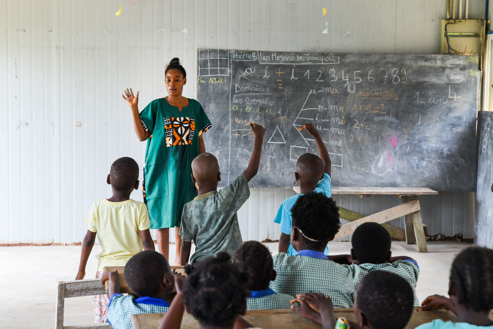 7月10日,在喀麥隆南部大區(qū)克里比市,老師和學(xué)生參加恩杜馬萊雙語學(xué)校暑期活動。新華社發(fā)(科普索攝)