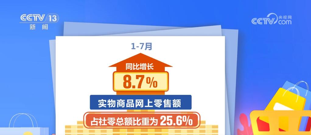 同時,線上消費增勢較好。1—7月,實物商品網(wǎng)上零售額同比增長8.7%,占社零總額比重為25.6%。7月份,我國快遞業(yè)務(wù)量達142.6億件,同比增長22.2%。