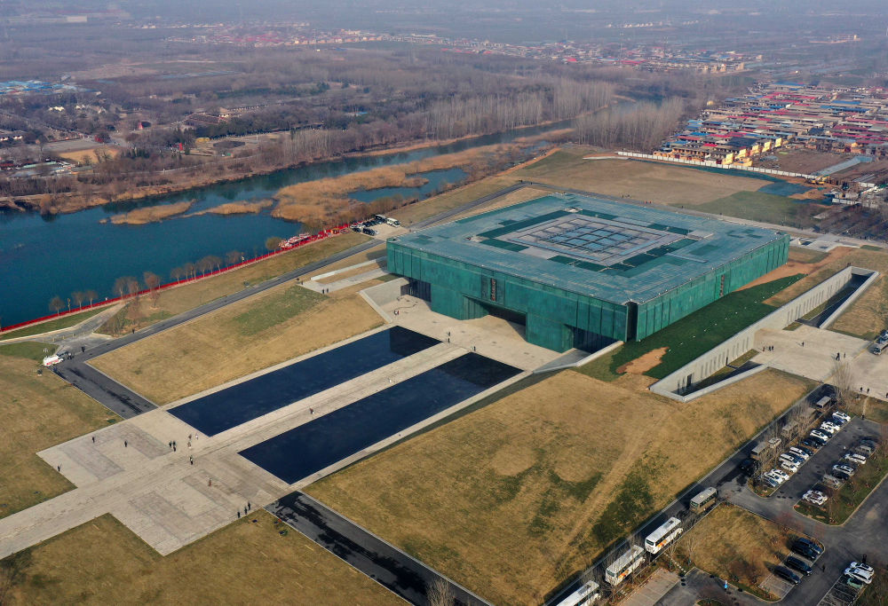 這是2024年2月26日拍攝的位于河南省安陽(yáng)市的殷墟博物館新館(無(wú)人機(jī)照片)。新華社記者 李安攝