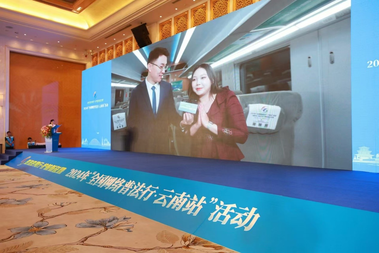 今日,2024年“全國網(wǎng)絡(luò)普法行·云南站”活動在昆明啟動。作為活動的一大亮點,在昆明南站始發(fā)的“e路有法 命運與共”普法專列滿載著法律知識,沿著中老鐵路這一國際大通道,為乘客們打造了別開生面的普法之旅。