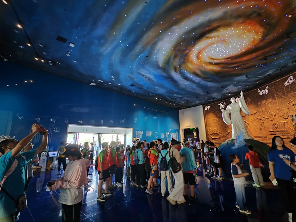 天文體驗館、時光塔、天幕街,小鎮(zhèn)處處充滿科技感和未來感;當(dāng)夜幕籠罩,抬頭便是浩瀚星空。“沒想到天眼是這樣建成的”“‘天眼之父’南仁東爺爺真厲害”……來自河南鄭州一研學(xué)團(tuán)隊的30名中小學(xué)生登上“中國天眼”觀景臺、參觀完南仁東事跡館后紛紛點(diǎn)贊。研學(xué)導(dǎo)師李亞龍說,這次帶的線路以“中國天眼”為核心,包含“觀天”“探洞”“看橋”,讓青少年充分感受到“中國科技的力量”。