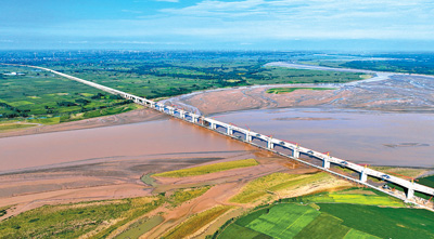 黃河下游,浪濤滾滾。中原大地上,河南鄭州、新鄉(xiāng)、開(kāi)封三市交界處,一條長(zhǎng)橋橫臥大河之上,連通起河流兩岸。