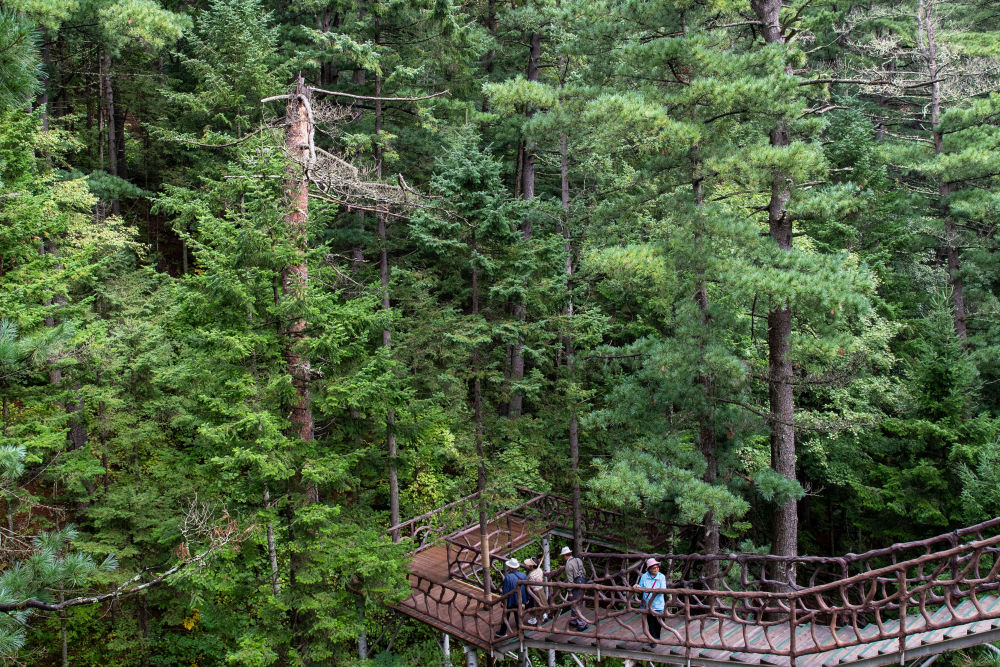 8月27日,游客在黑龍江伊春市上甘嶺溪水國(guó)家森林公園內(nèi)游覽。