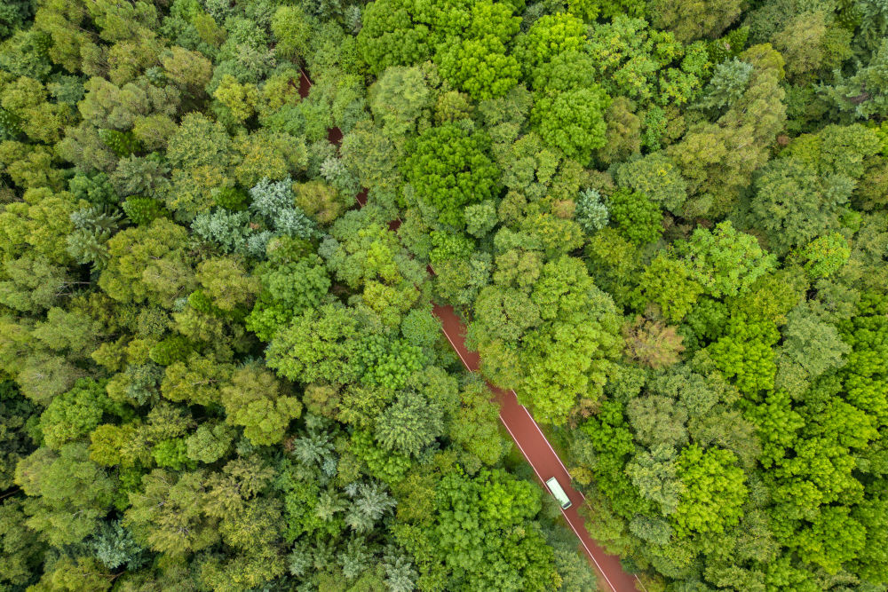8月27日,游客乘坐電瓶車在黑龍江伊春市上甘嶺溪水國(guó)家森林公園內(nèi)穿行(無(wú)人機(jī)照片)。