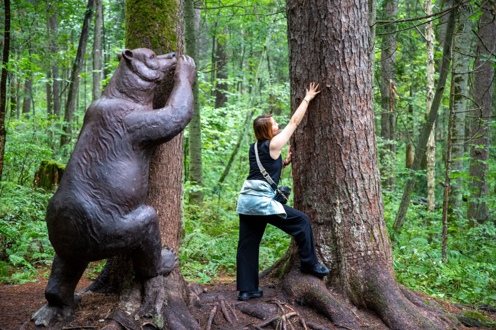 8月27日,游客在黑龍江伊春市上甘嶺溪水國(guó)家森林公園內(nèi)拍照。